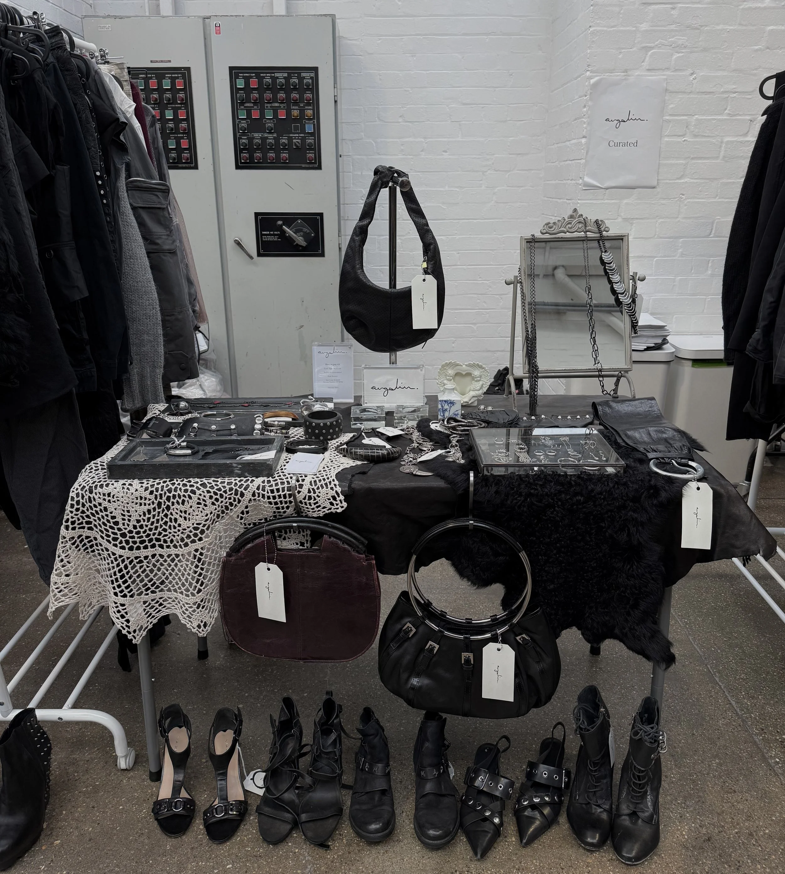 angéline curated is a new symphony of second-hand pieces sourced by angéline that compliment garments and accessories made by the brand, to build out into a conceptual approach of building community in London with a physical presence.